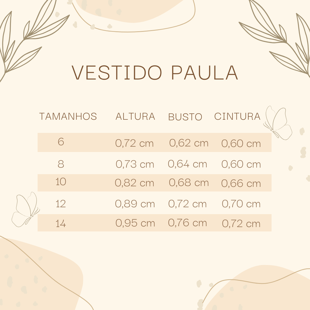 Cuidados com a peça: Para conservar a beleza e durabilidade do Vestido Paula, lave à mão ou à máquina no ciclo delicado. Evite o uso de alvejantes e prefira passar em temperatura baixa para manter o tecido intacto.